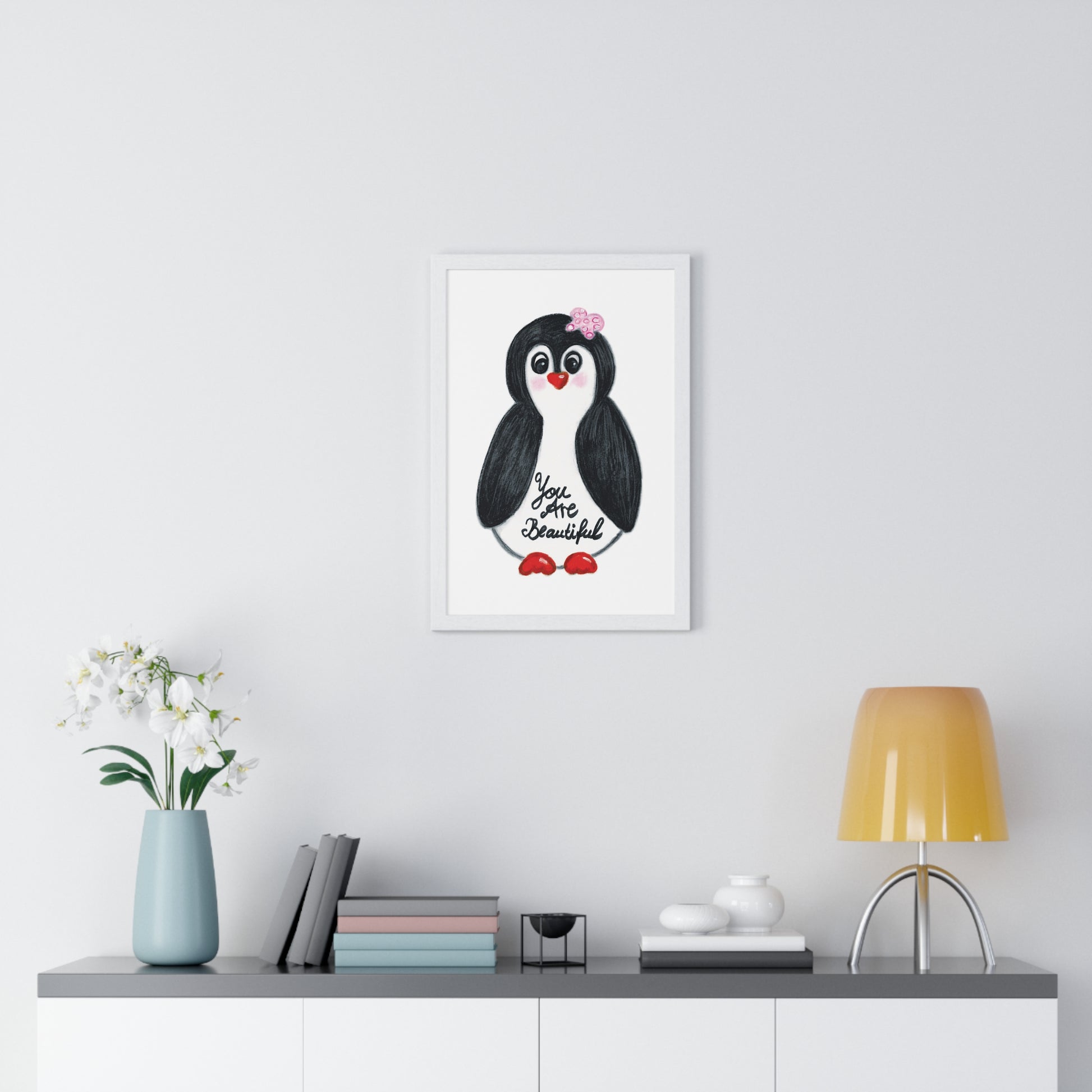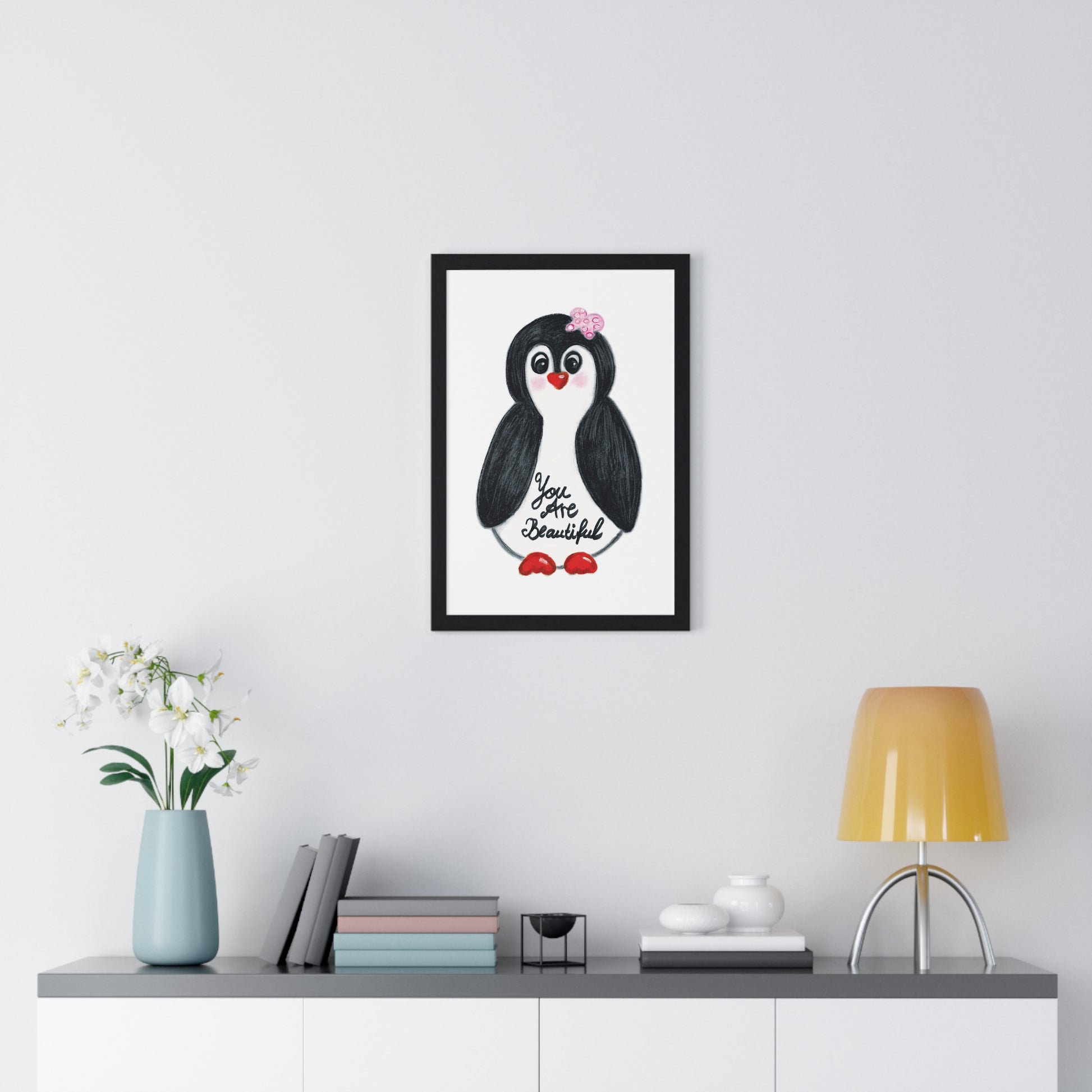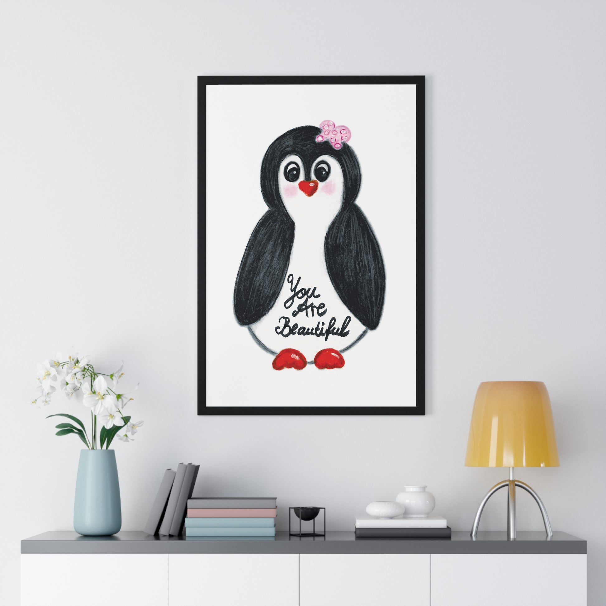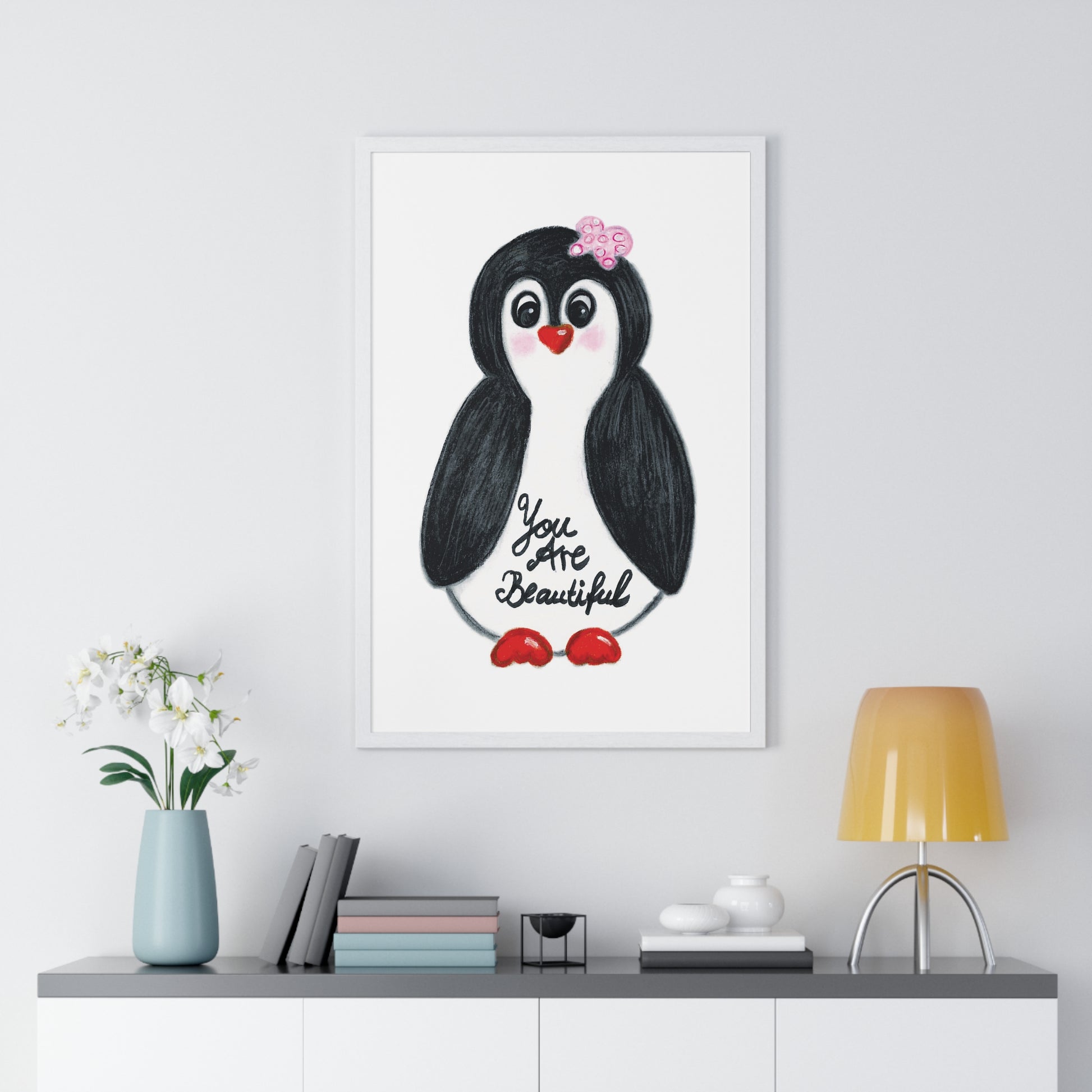 Little penguin beautiful - Vertical Framed Poster