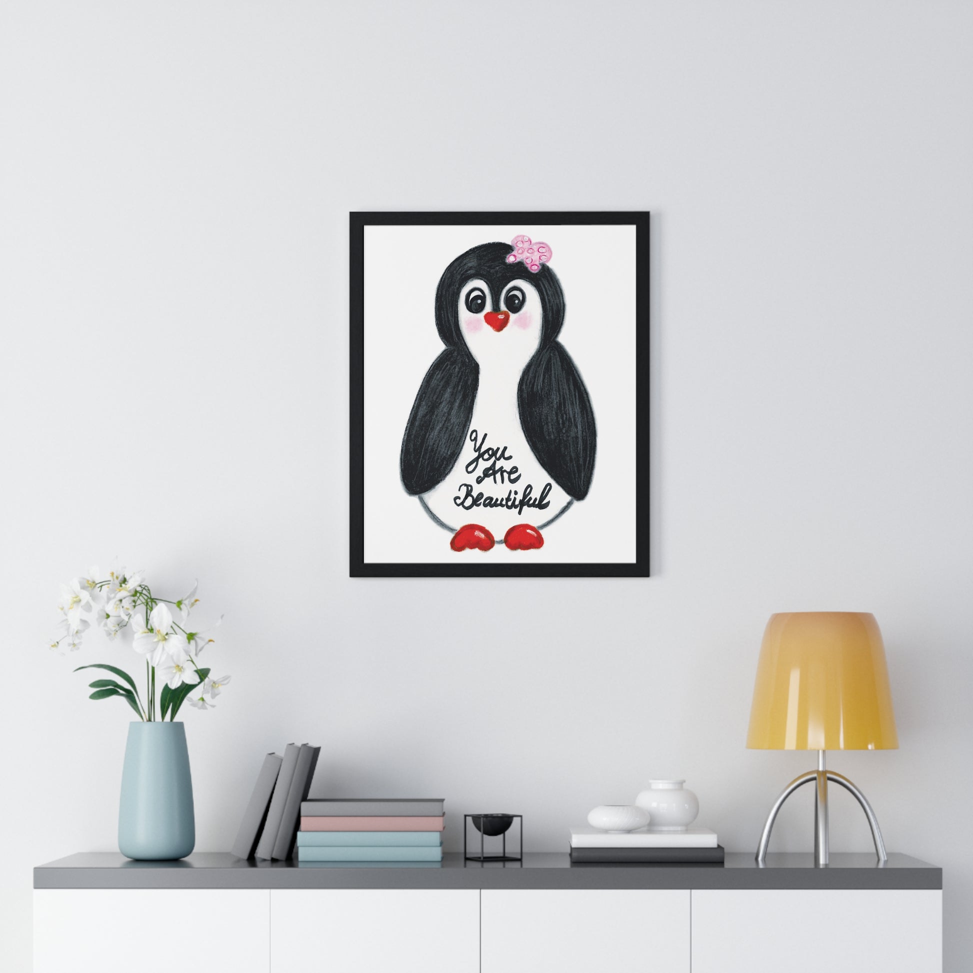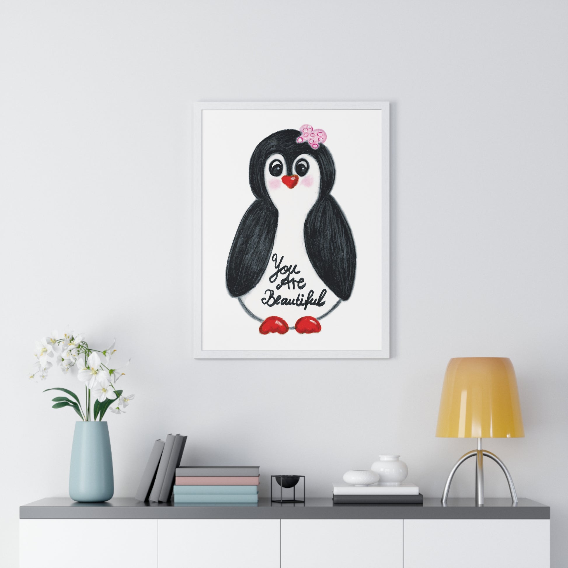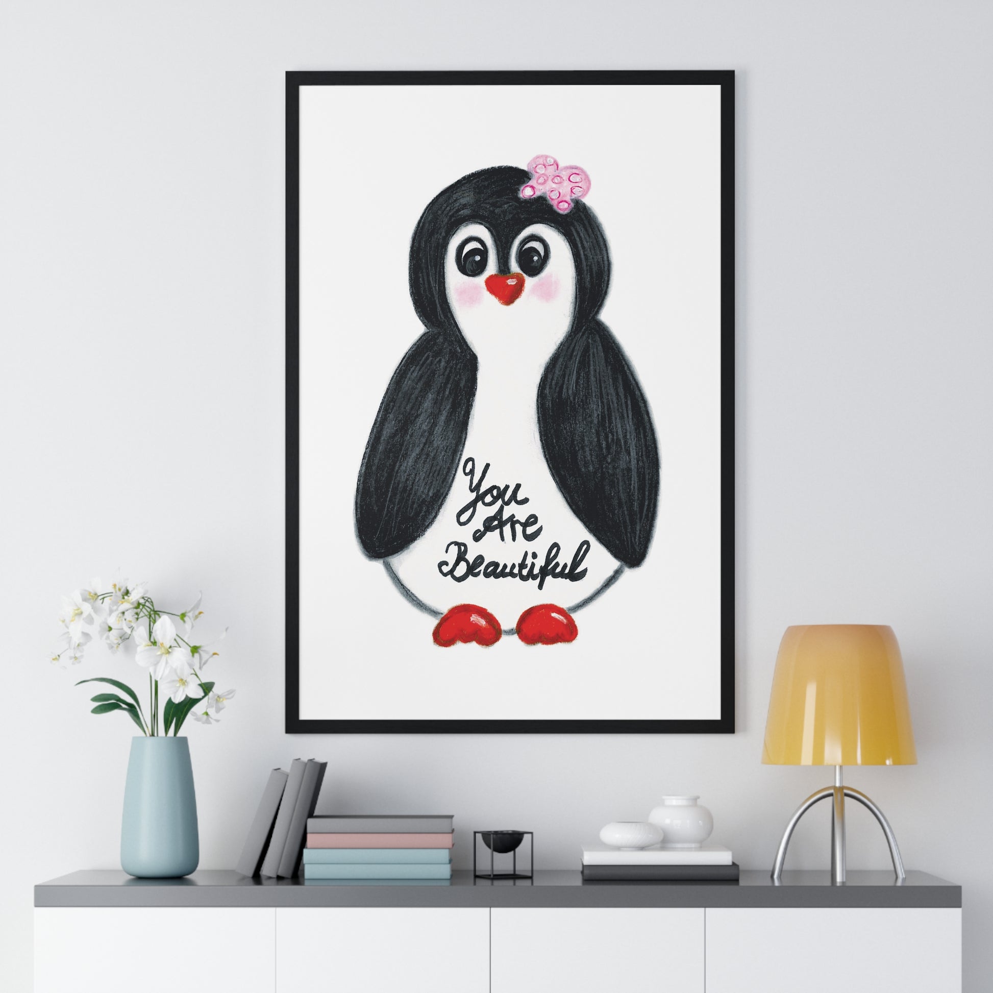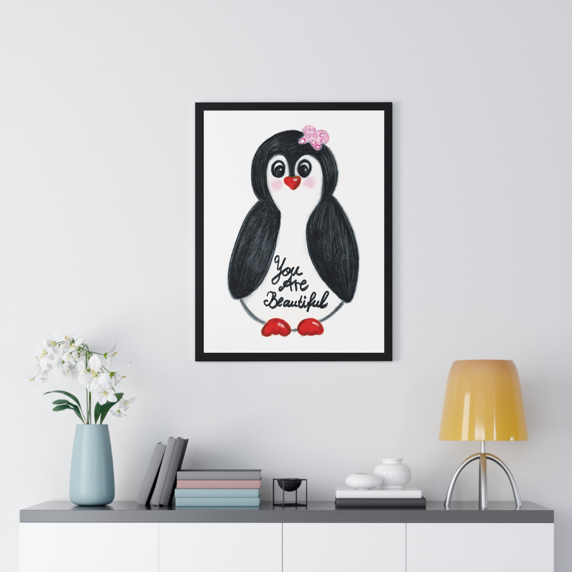 Little penguin beautiful - Vertical Framed Poster